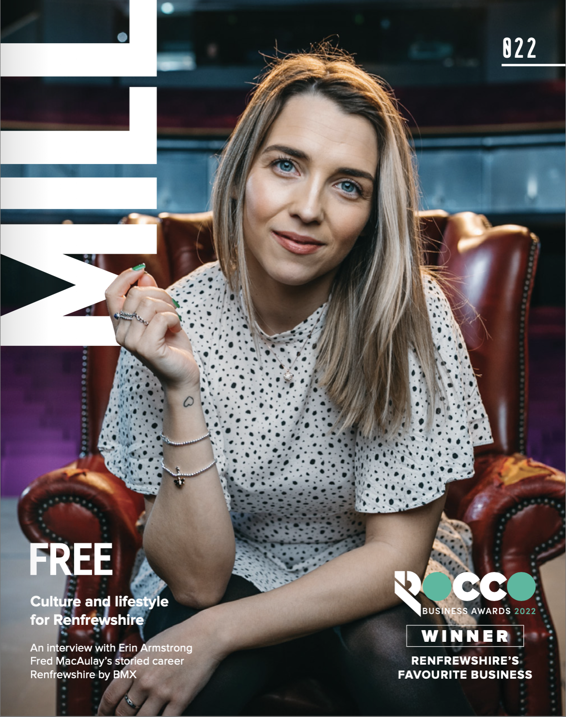 Over its short time in existence, Mill has grown to become the preeminent culture and lifestyle magazine for Renfrewshire. A free bimonthly, compact-sized and dynamically constructed publication, the title showcases the best people, artists, businesses, events and developments from across the region.